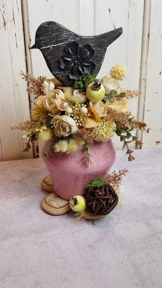 Dried Floral Arrangement in Ceramic Owl Vase –Boho style table decor, Nature-Inspired Home Decor – Fall Table Centerpiece, Owl lovers gift