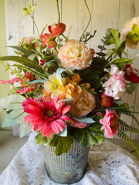 Whimsical Silk Flower Garden Arrangement – Bright Faux Floral Centerpiece