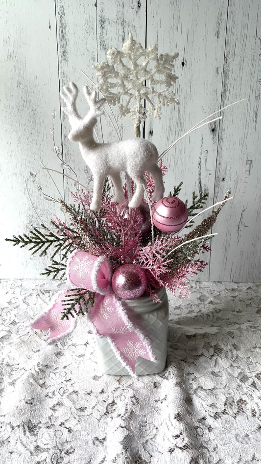 Holiday Deer Arrangement – Pink & White Winter Wonderland