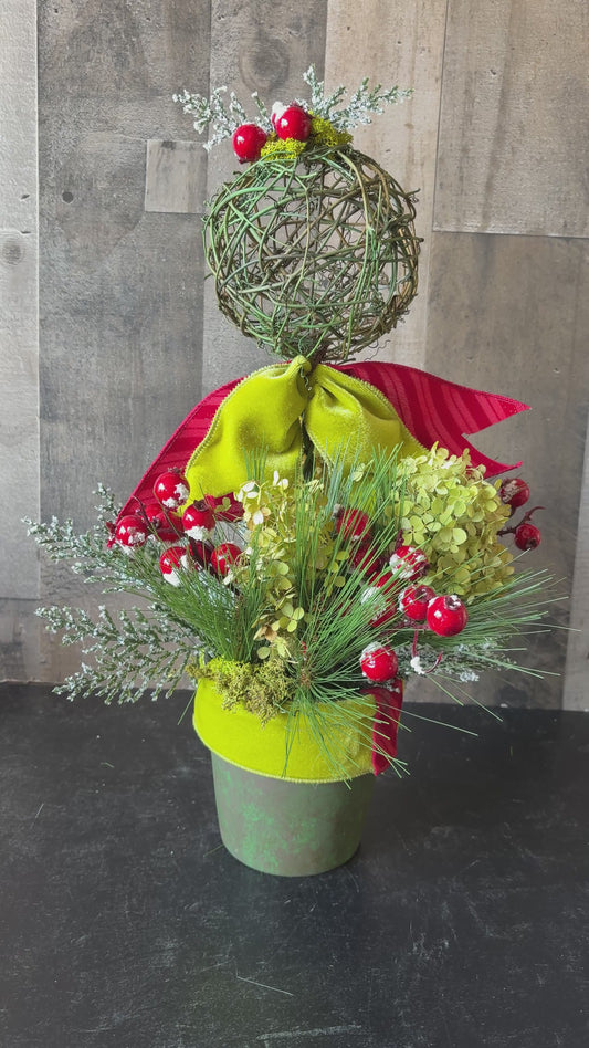 Christmas Topiary with Dried Hydrangeas & Velvet Ribbon | Elegant Holiday Table Décor