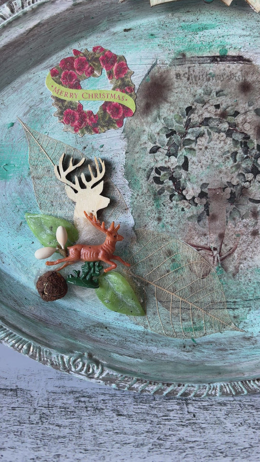 Vintage-Inspired Holiday Deer & Holly Tray | Upcycled Christmas Décor