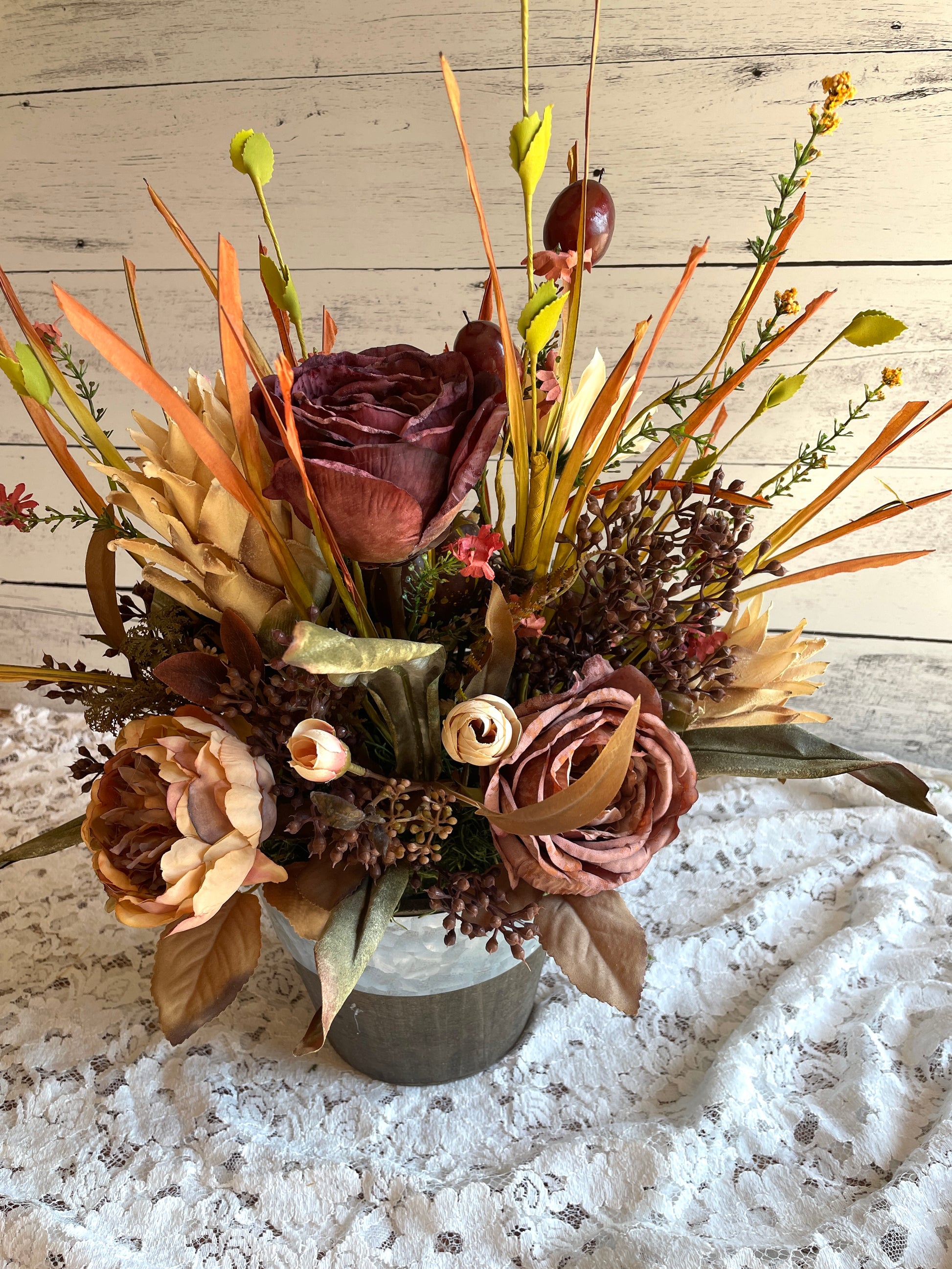 Handmade with premium-quality silk florals and fall embellishments