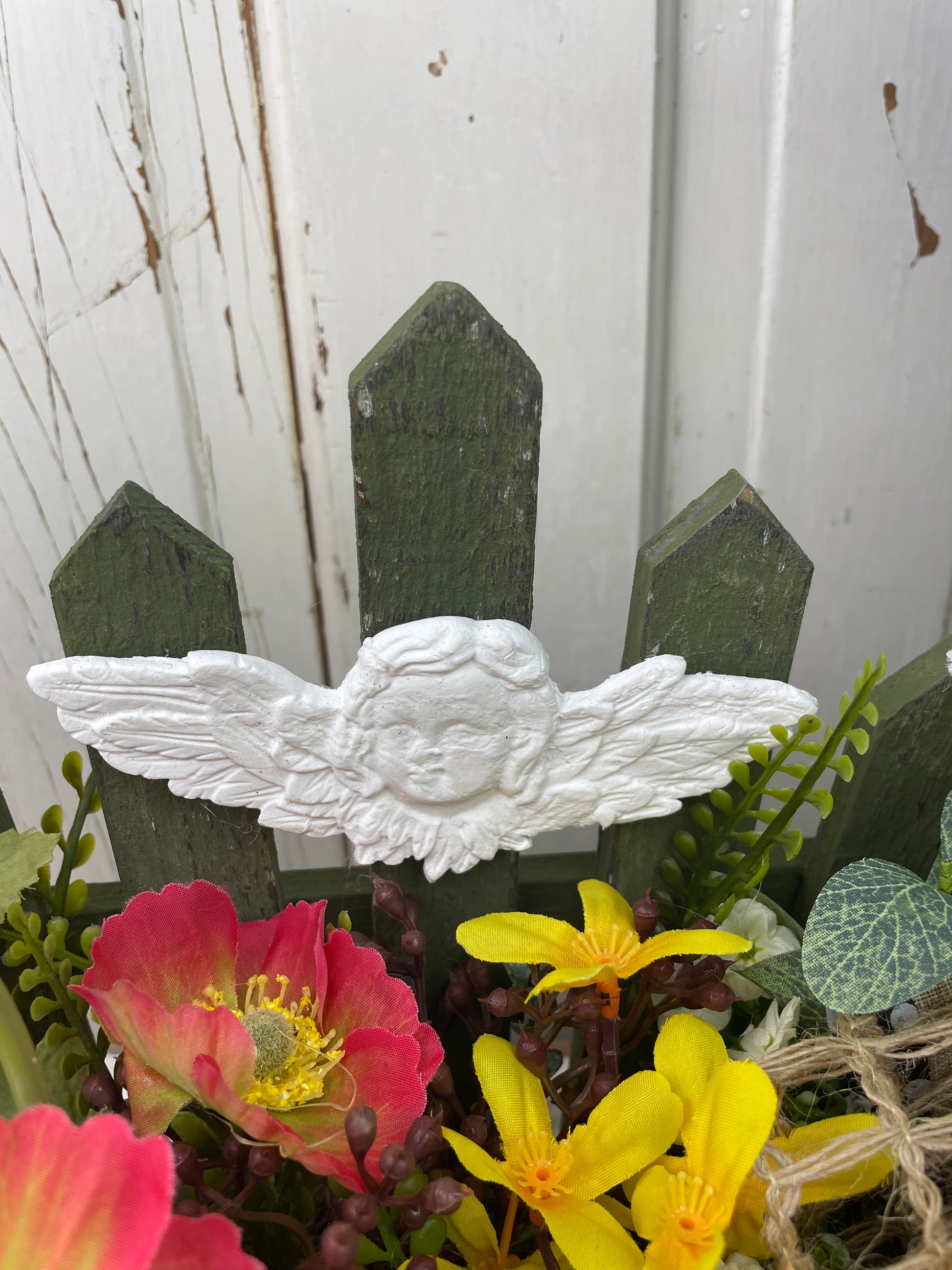 💐 Materials: High-quality silk flowers and durable picket fence container