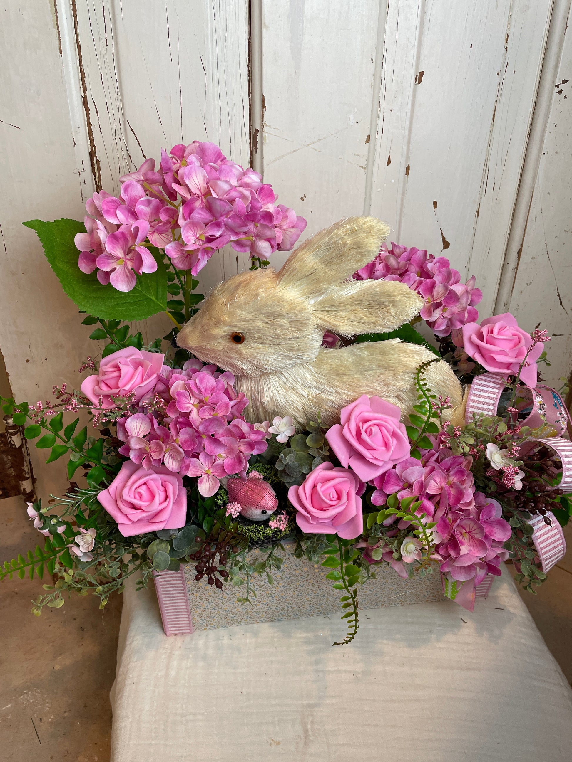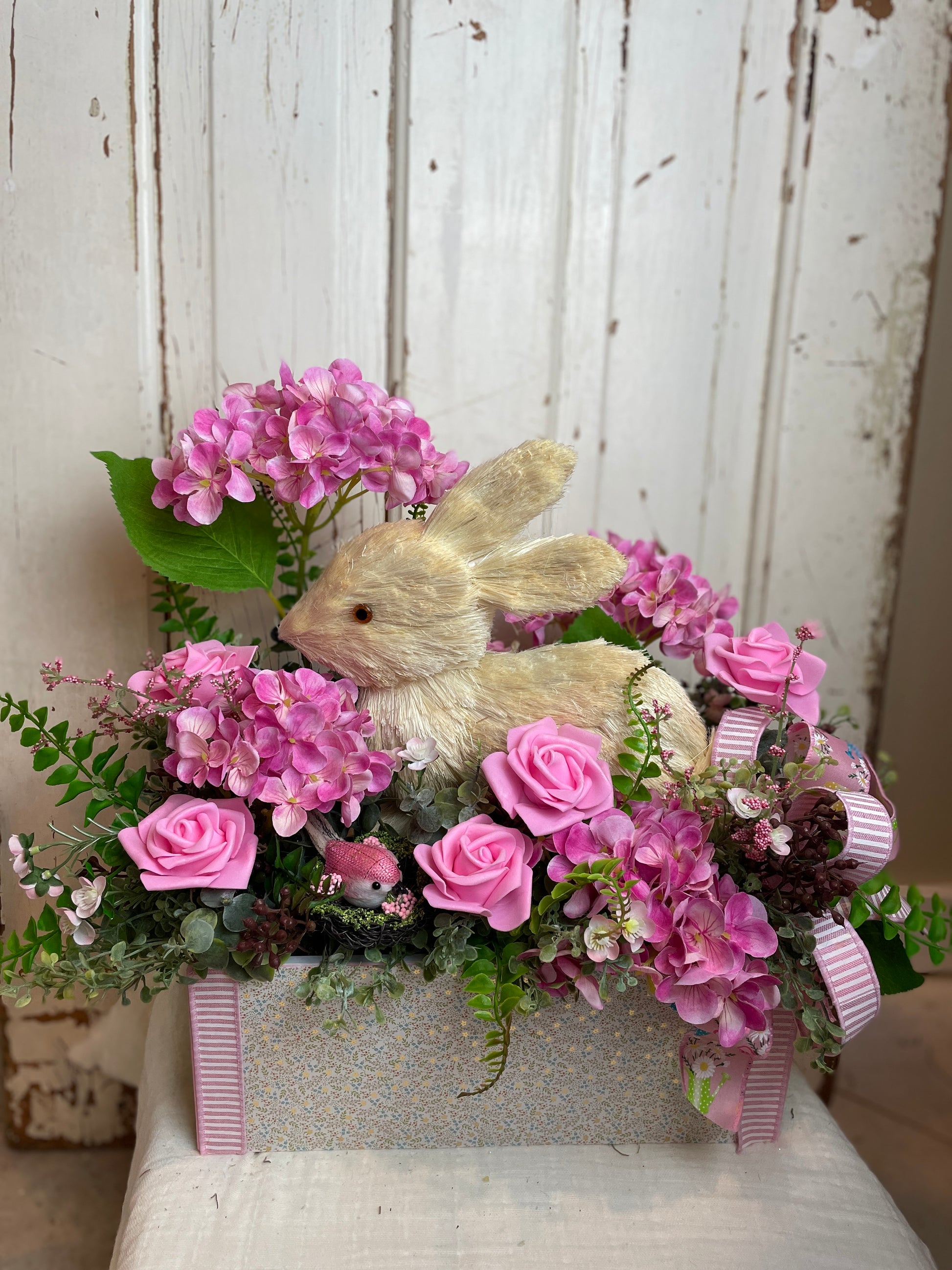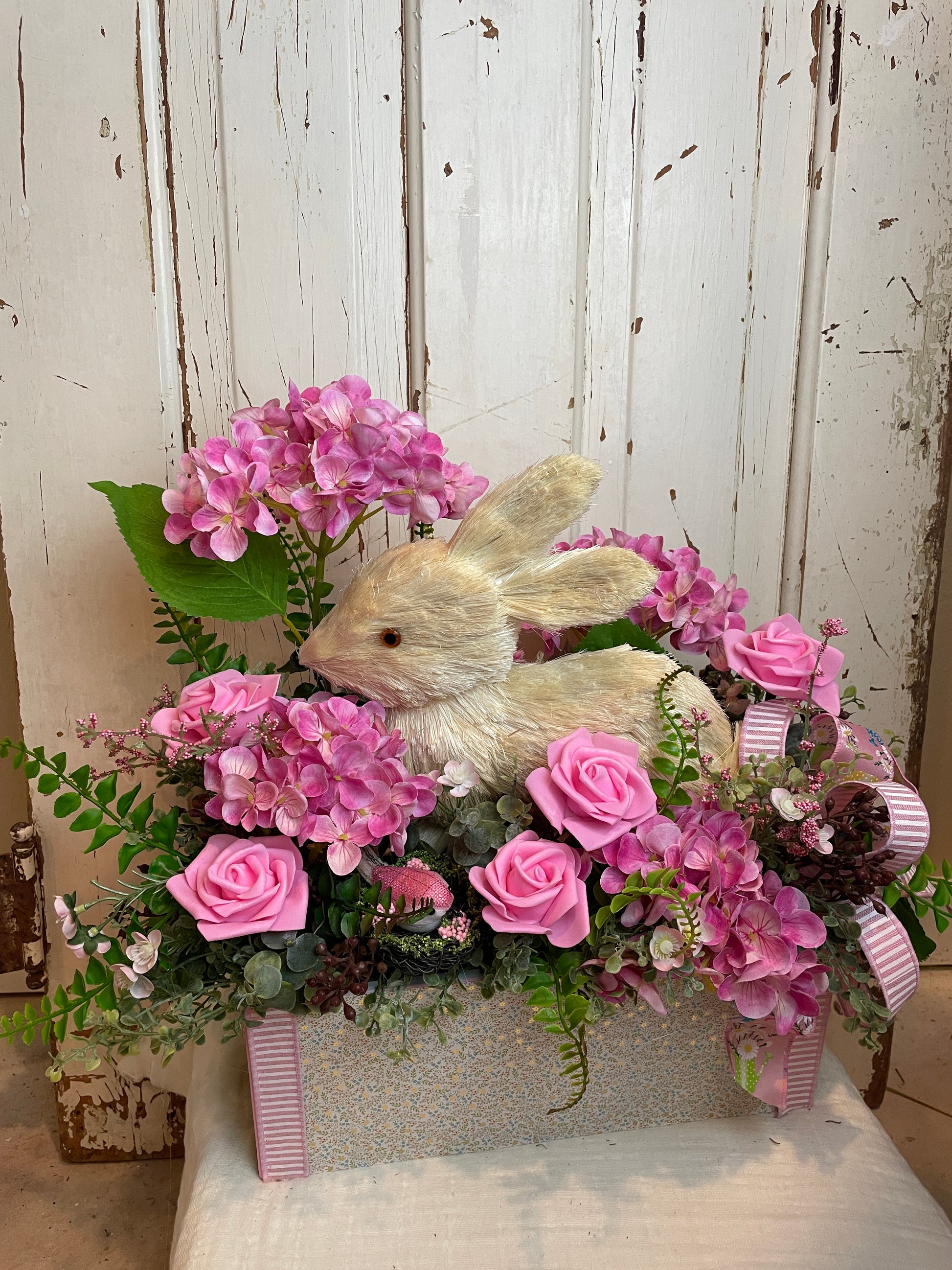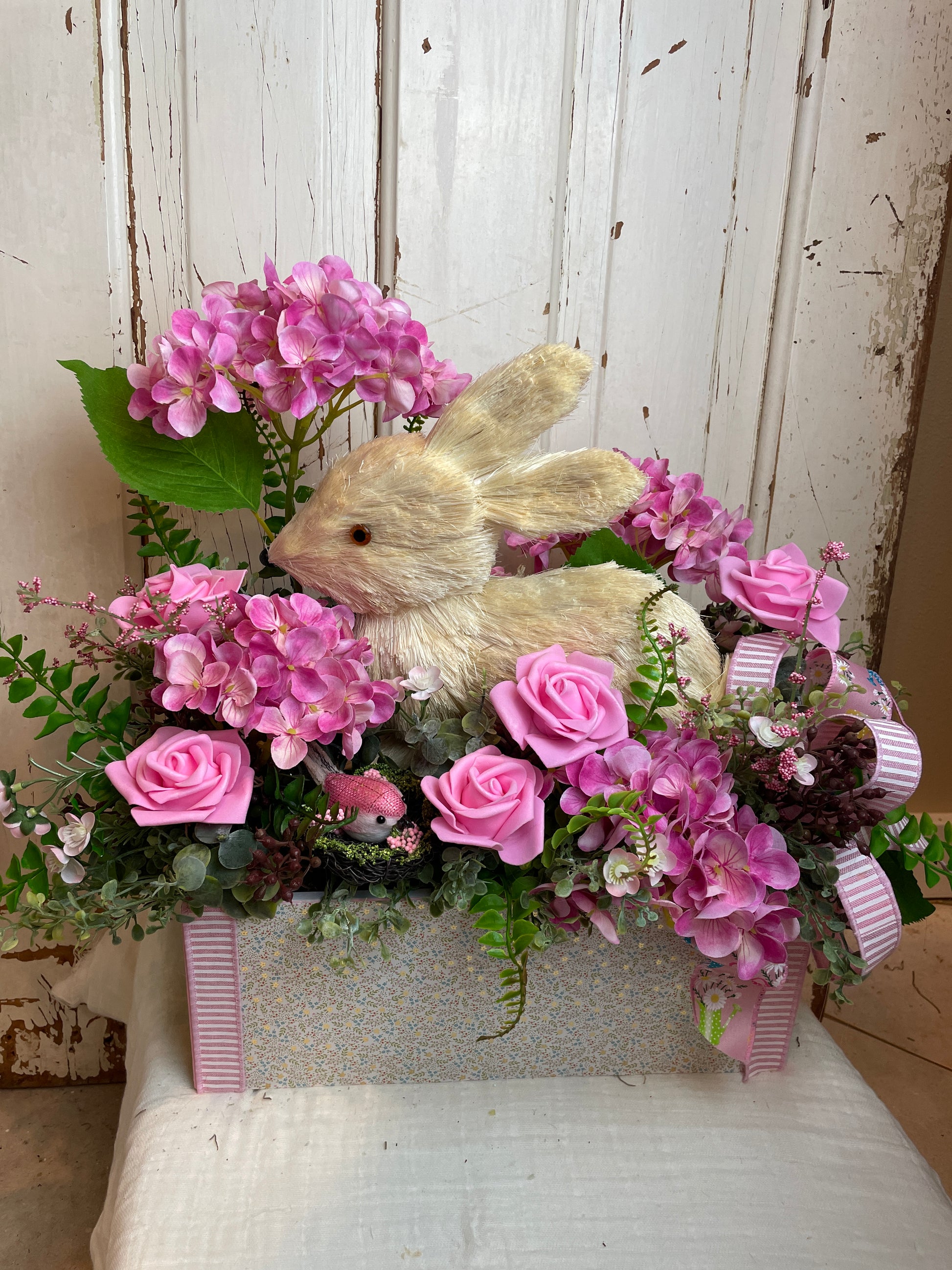 Bunny Floral Centerpiece – Shabby Chic Cottage Decor