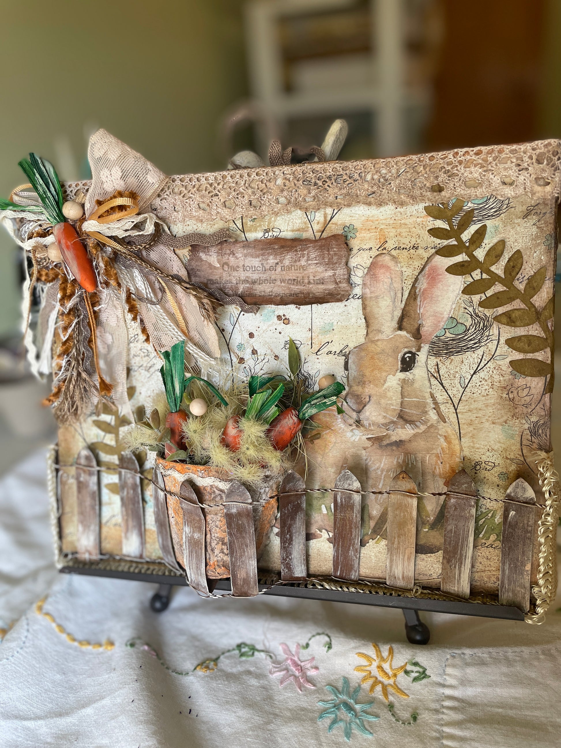 Bring warm, rustic charm to your home with this one-of-a-kind primitive bunny mixed media collage—a delightful celebration of spring, nature, and farmhouse simplicity. This handcrafted wall hanging features a whimsical rabbit illustration, surrounded by layered textures, vintage script, and earthy tones that evoke the beauty of the countryside.