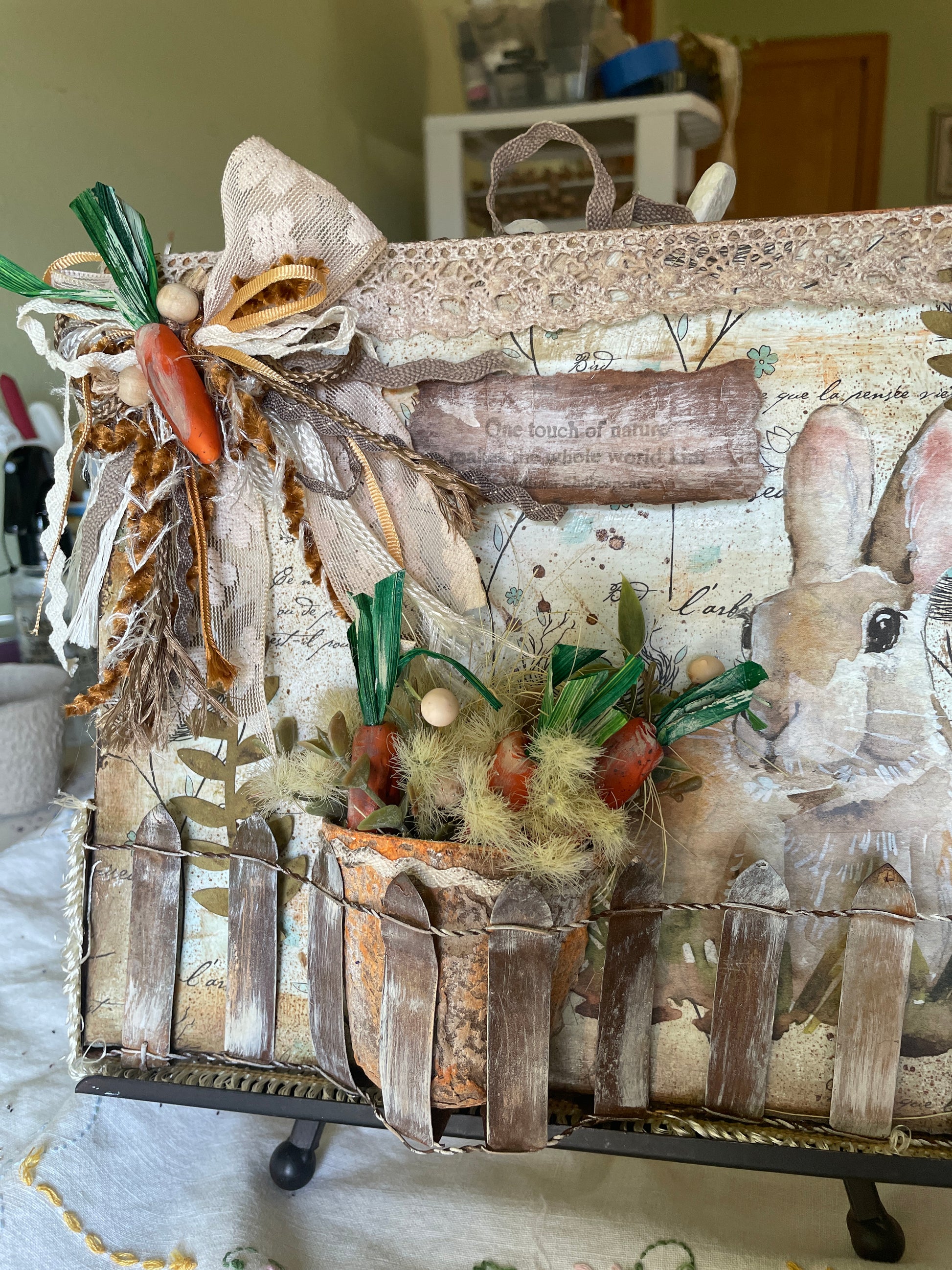 Perfect for primitive, country, or farmhouse-style homes, this unique piece is sure to be a conversation starter and a charming addition to your spring or Easter decor.