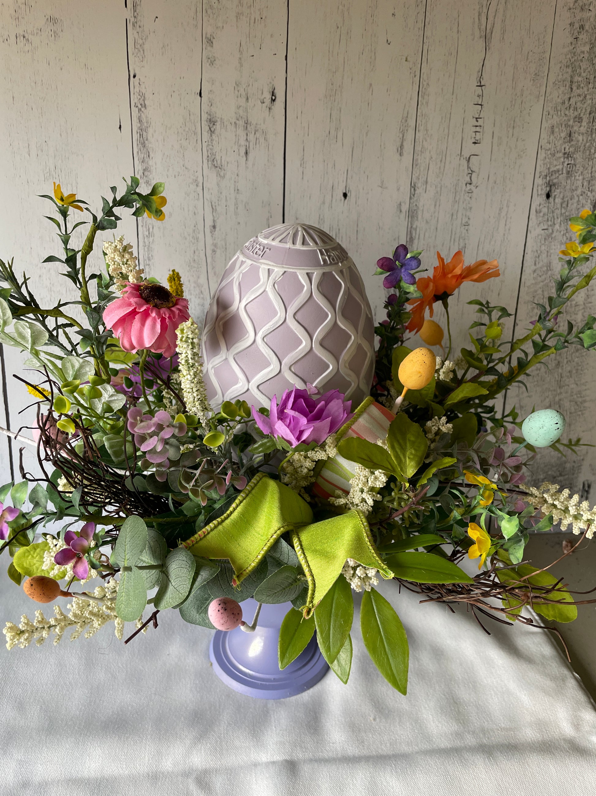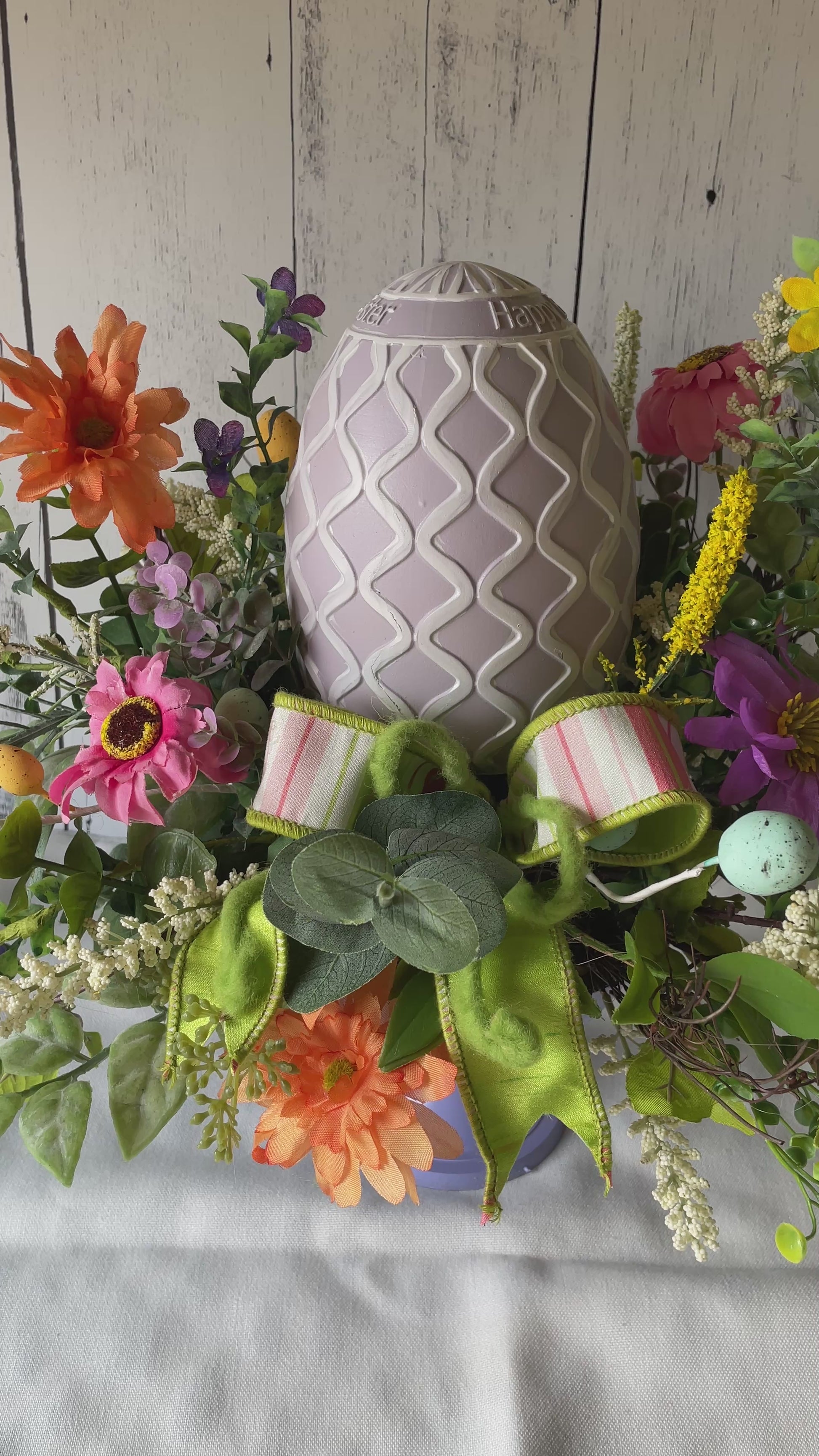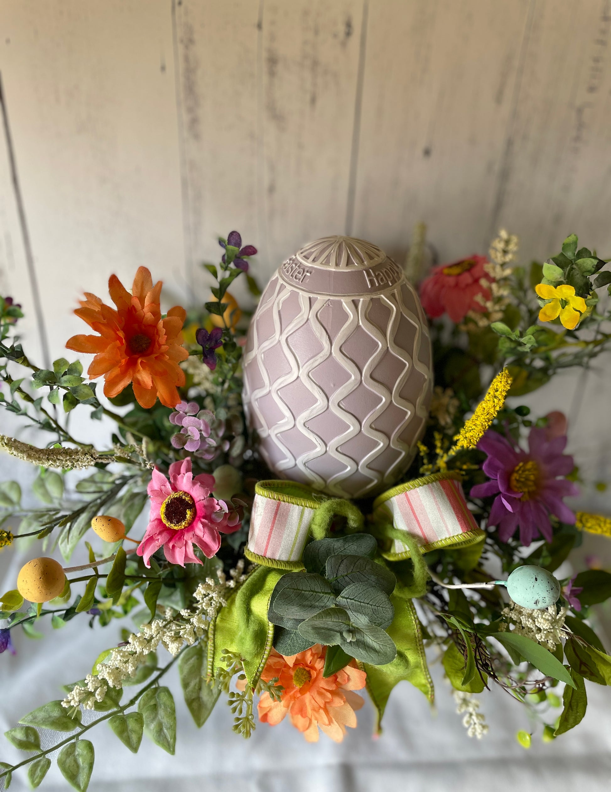 Welcome the beauty of spring with this whimsical Easter floral centerpiece! 🌿🐣 Featuring a large decorative Easter egg, vibrant silk florals, lush greenery, and charming ribbon accents, this handcrafted arrangement is perfect for adding a festive touch to your Easter dining table, entryway, or coffee table.