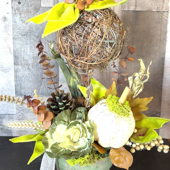 Neutral Fall Topiary with Pumpkins | Cottage Garden Autumn Table Décor