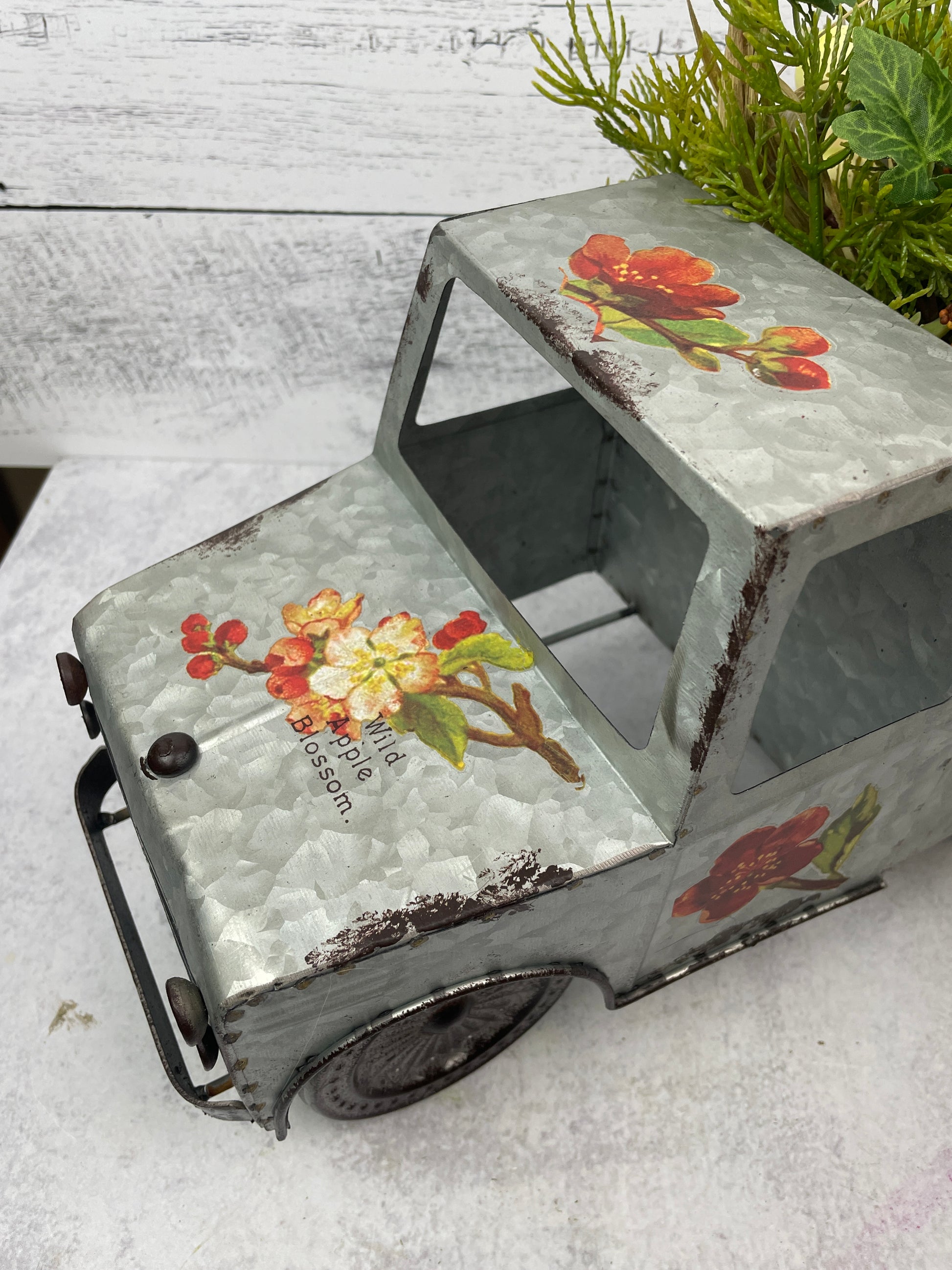 This one-of-a-kind piece will make a beautiful centerpiece for your home, office, or outdoor space. Its unique design is a great conversation starter, and the detailed florals capture the beauty of nature while being easy to care for. Perfect as a gift for a truck lover, fall decor enthusiast, or anyone looking to add a whimsical vintage vibe to their space!