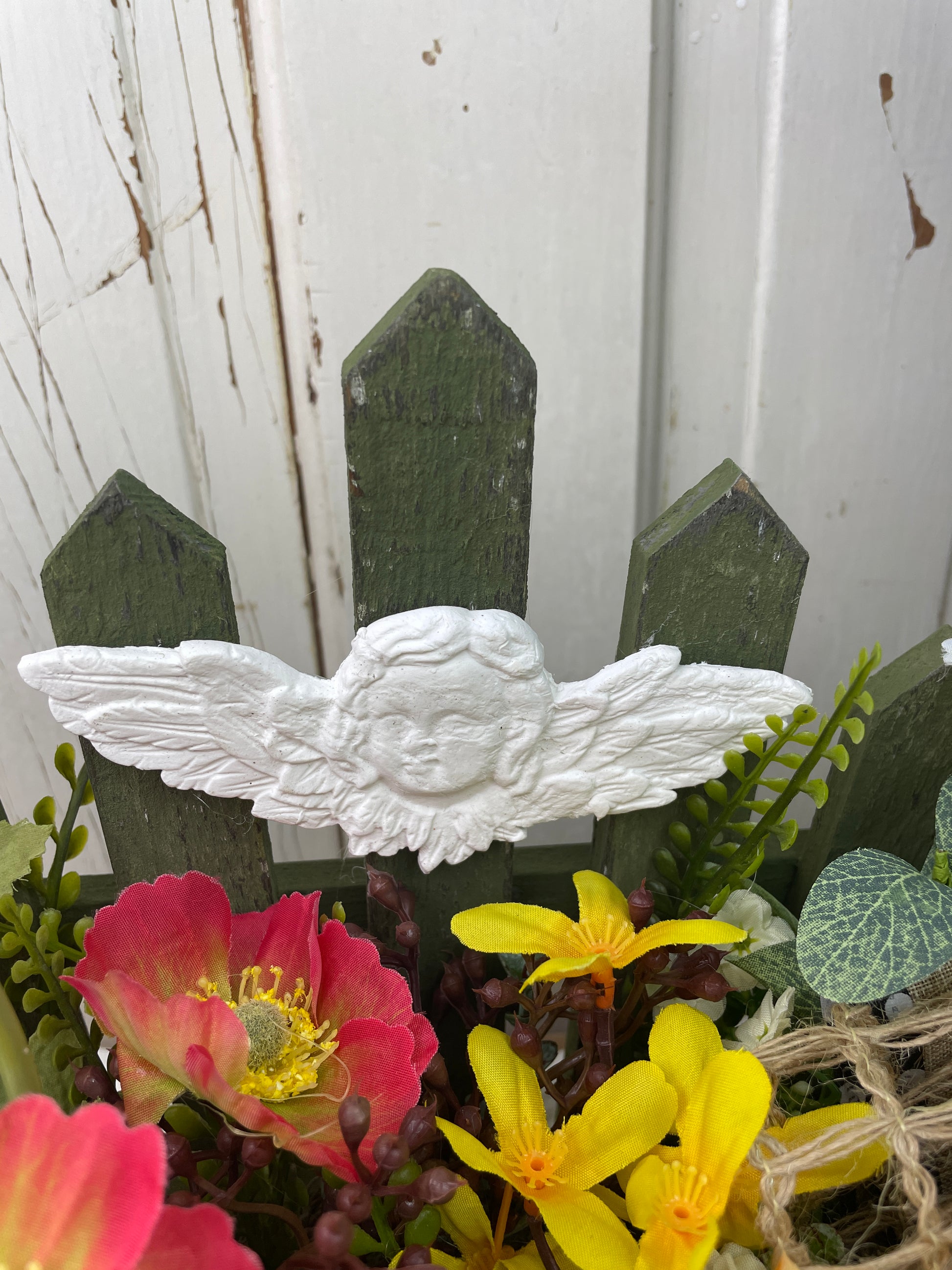 💐 Materials: High-quality silk flowers and durable picket fence container