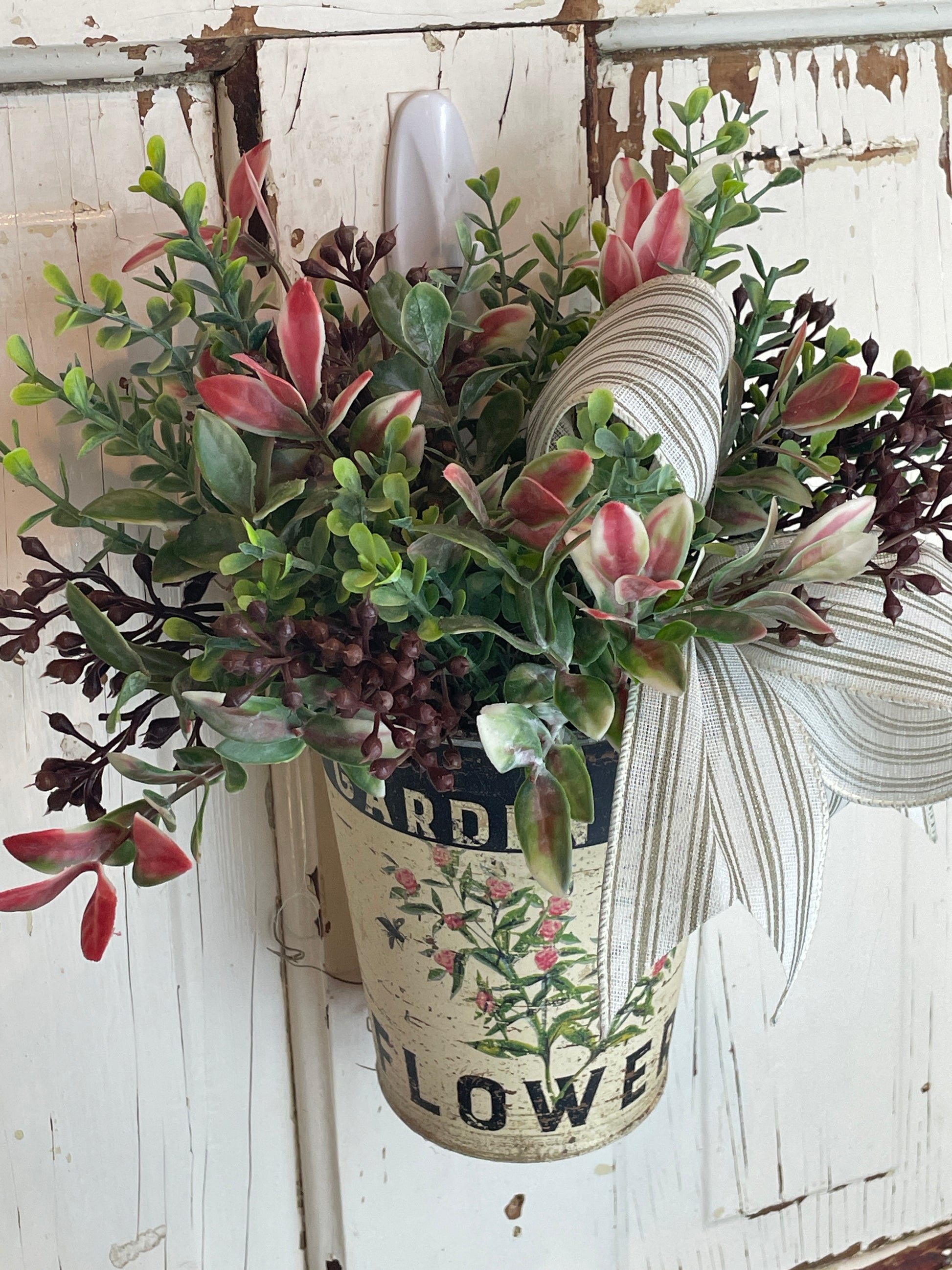 This handmade floral arrangement brings lasting beauty with no maintenance needed. Hang it on a wall, door, or covered porch for a timeless, nature-inspired look.